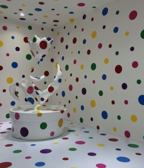 언뜻 보기에 가볍고 경쾌하게만 보이는 쿠사마 야요이의 물방울무늬의 작품 속 끊임없이 계속되는 동그란 점들은 쿠사마의 강박증세가 빚어낸 예술이 담겨 있다. 거울·풍선·마카로니·헝겊·오브제 등 모든 매체를 동원하여 그의 반복·집적을 과장해 갔고, 작업의 폭은 더욱 넓어지게 된다. 광기는 때론 창조적 정신이 지닌 특별한 자산의 하나로 여겨진다. 그러나 미쳤기 때문에 천재인 것은 아니다. 다만, 환상을 가질 수 있는 힘들을 해방시키고, 자극하게 한다.